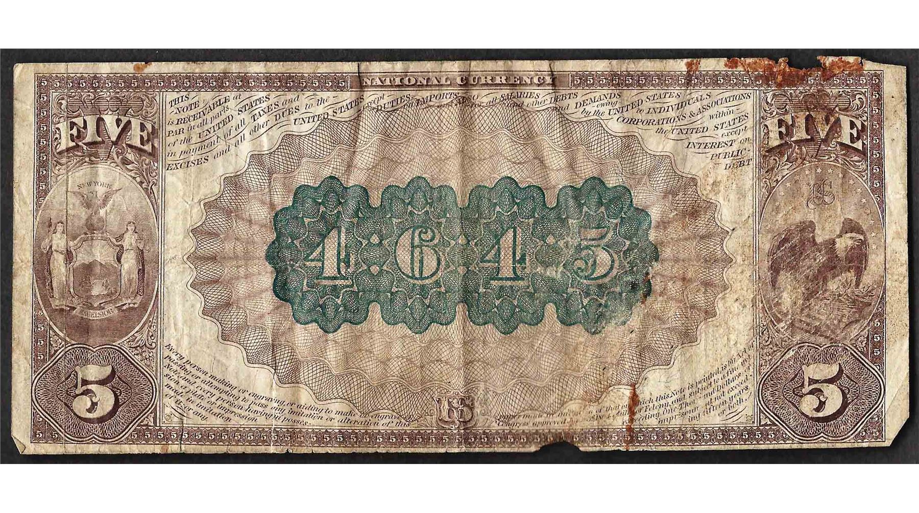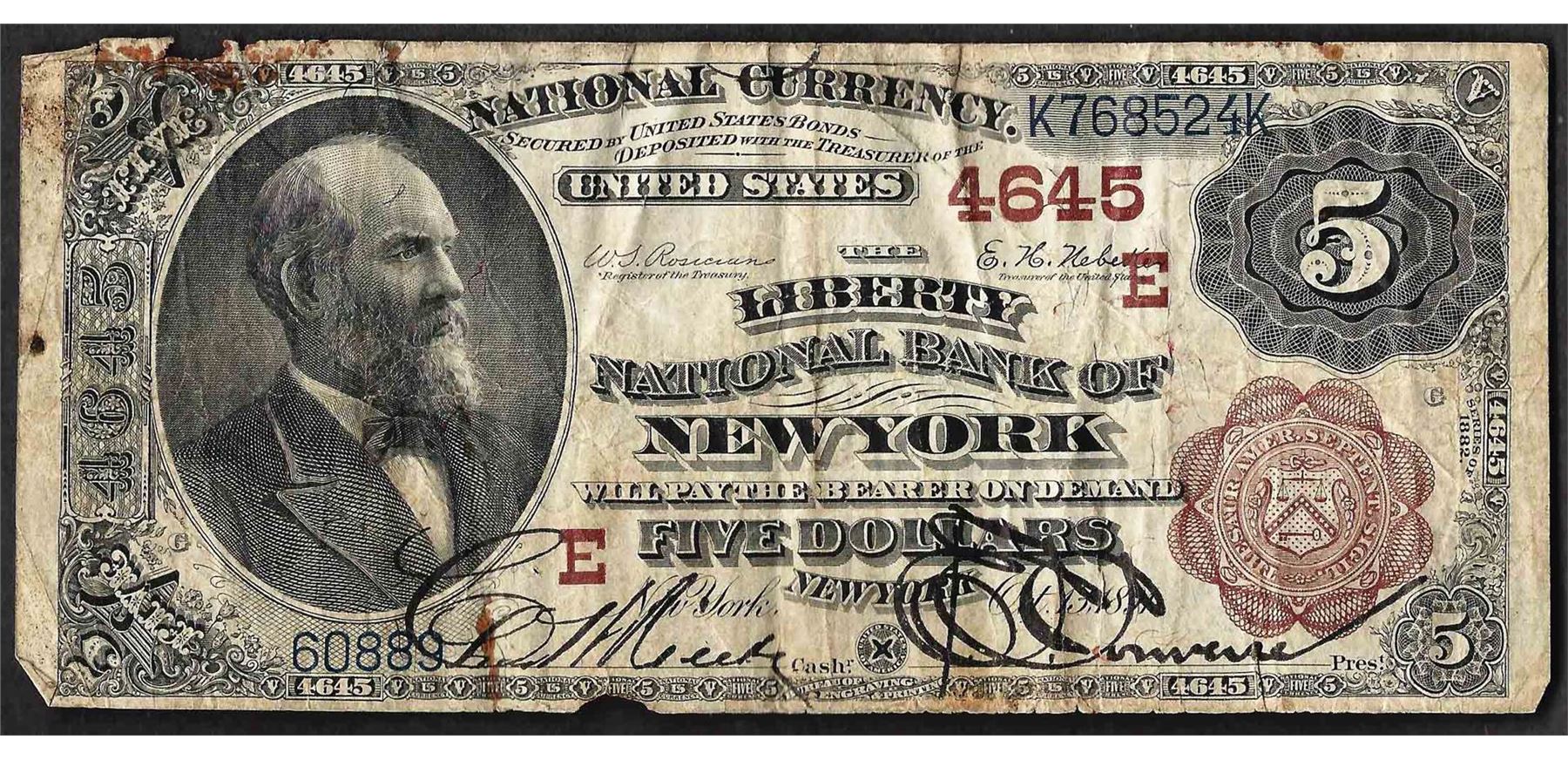 One 1882 $5 Brown Back New York, New York National Currency Note CH# 4645.