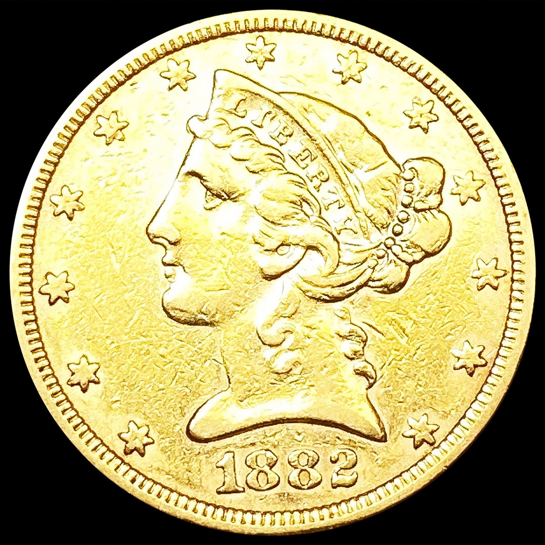1882 $5 Gold Half Eagle CLOSELY UNCIRCULATED