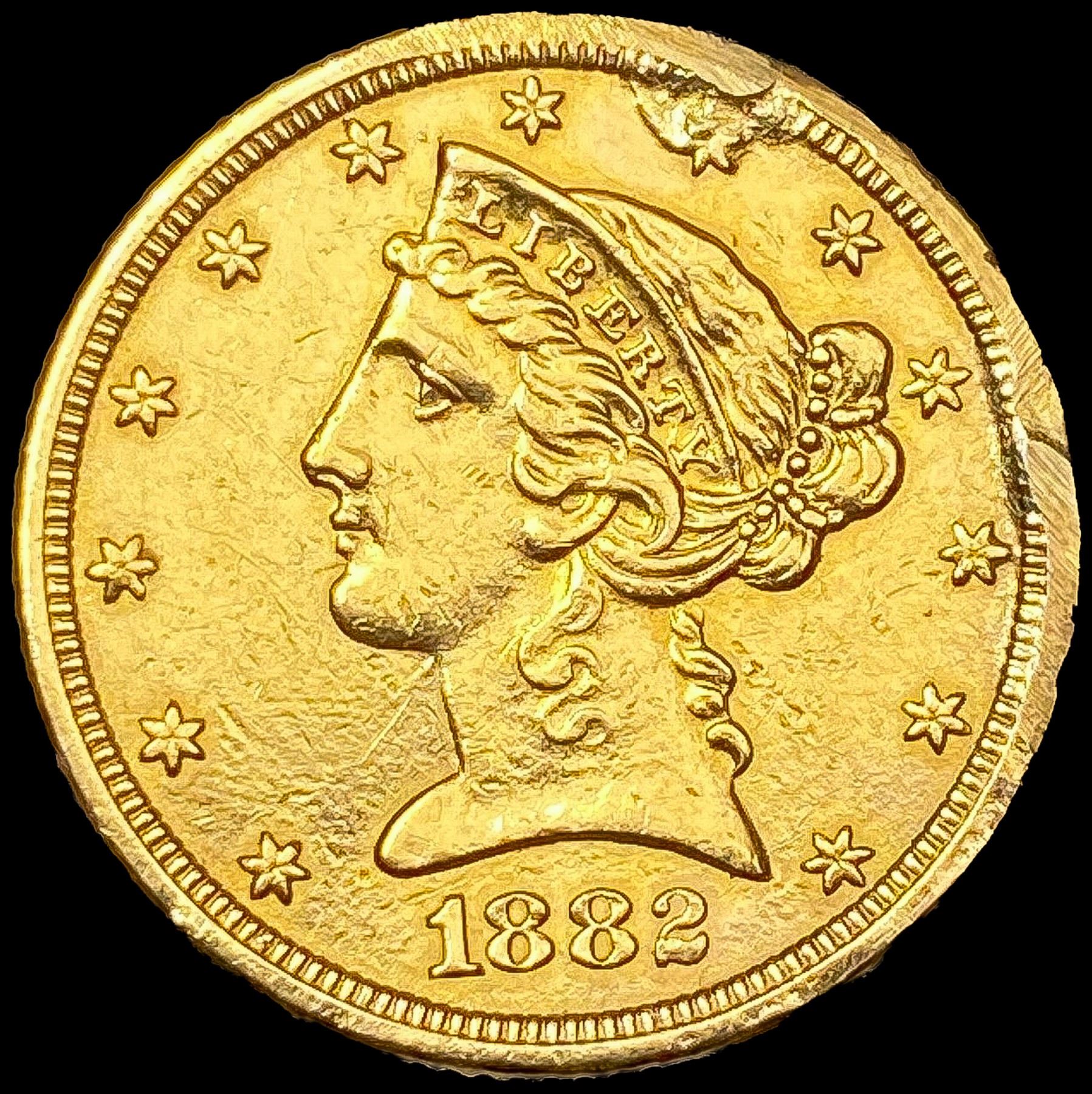1882 $5 Gold Half Eagle CLOSELY UNCIRCULATED