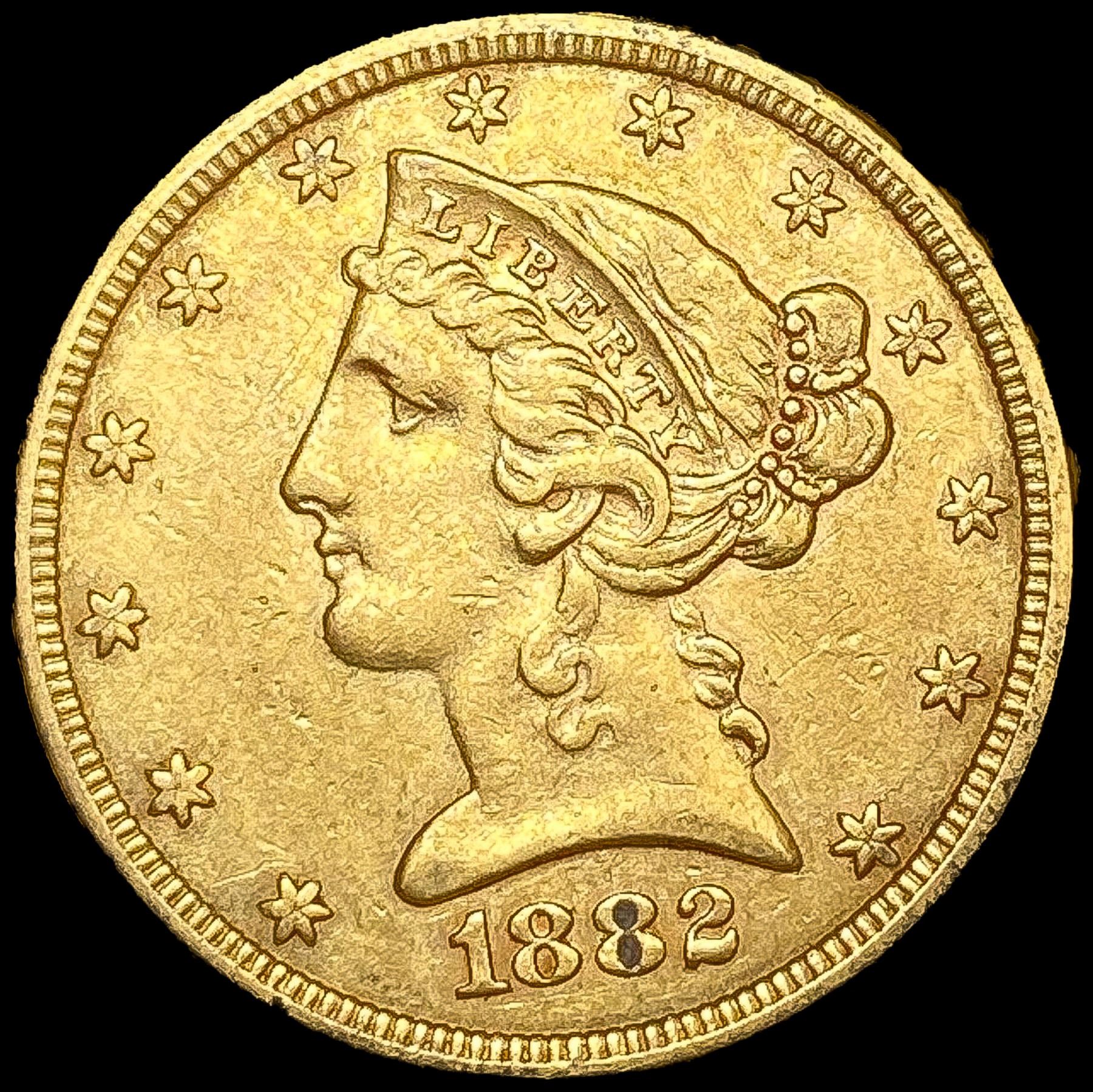 1882 $5 Gold Half Eagle CLOSELY UNCIRCULATED