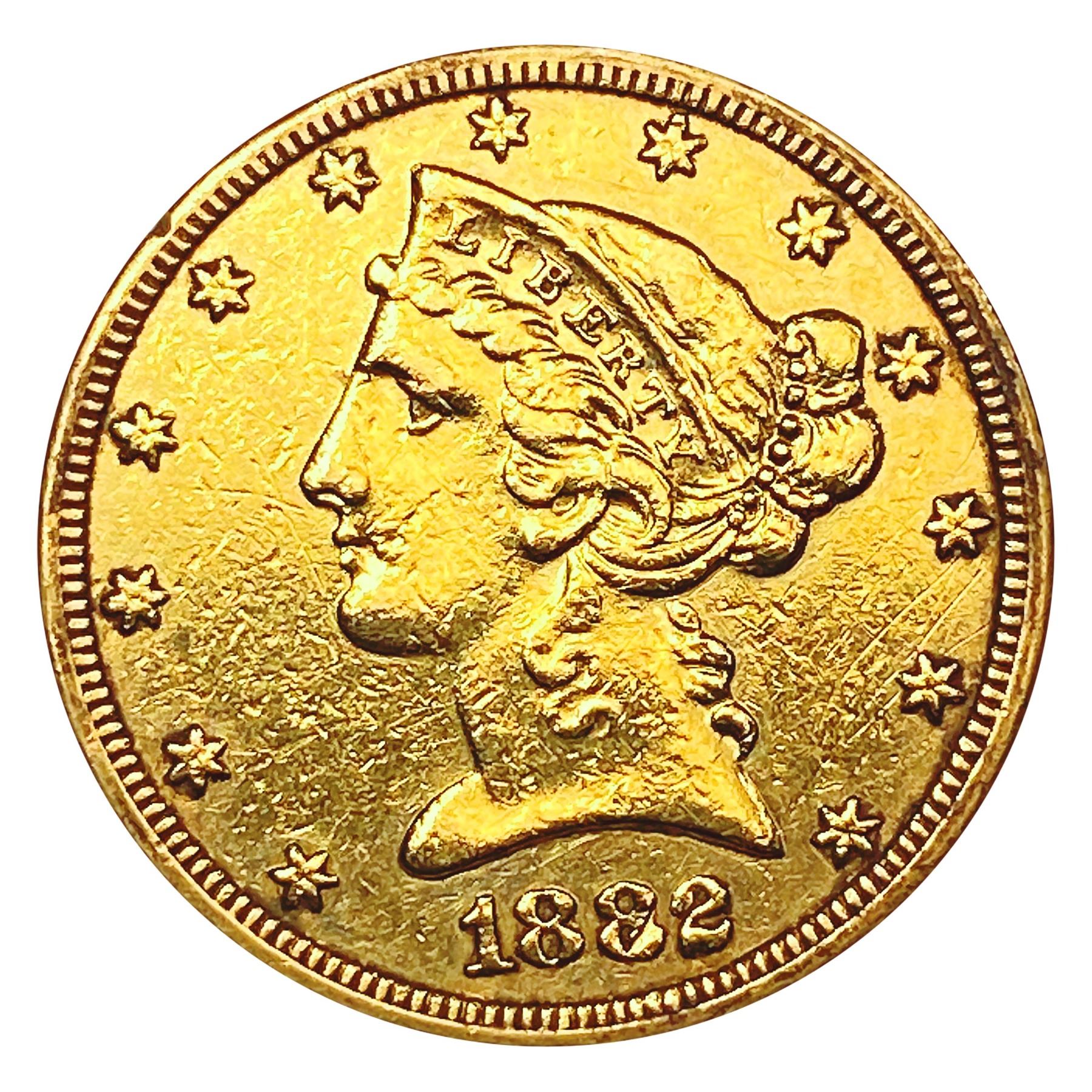 1882 $5 Gold Half Eagle CLOSELY UNCIRCULATED