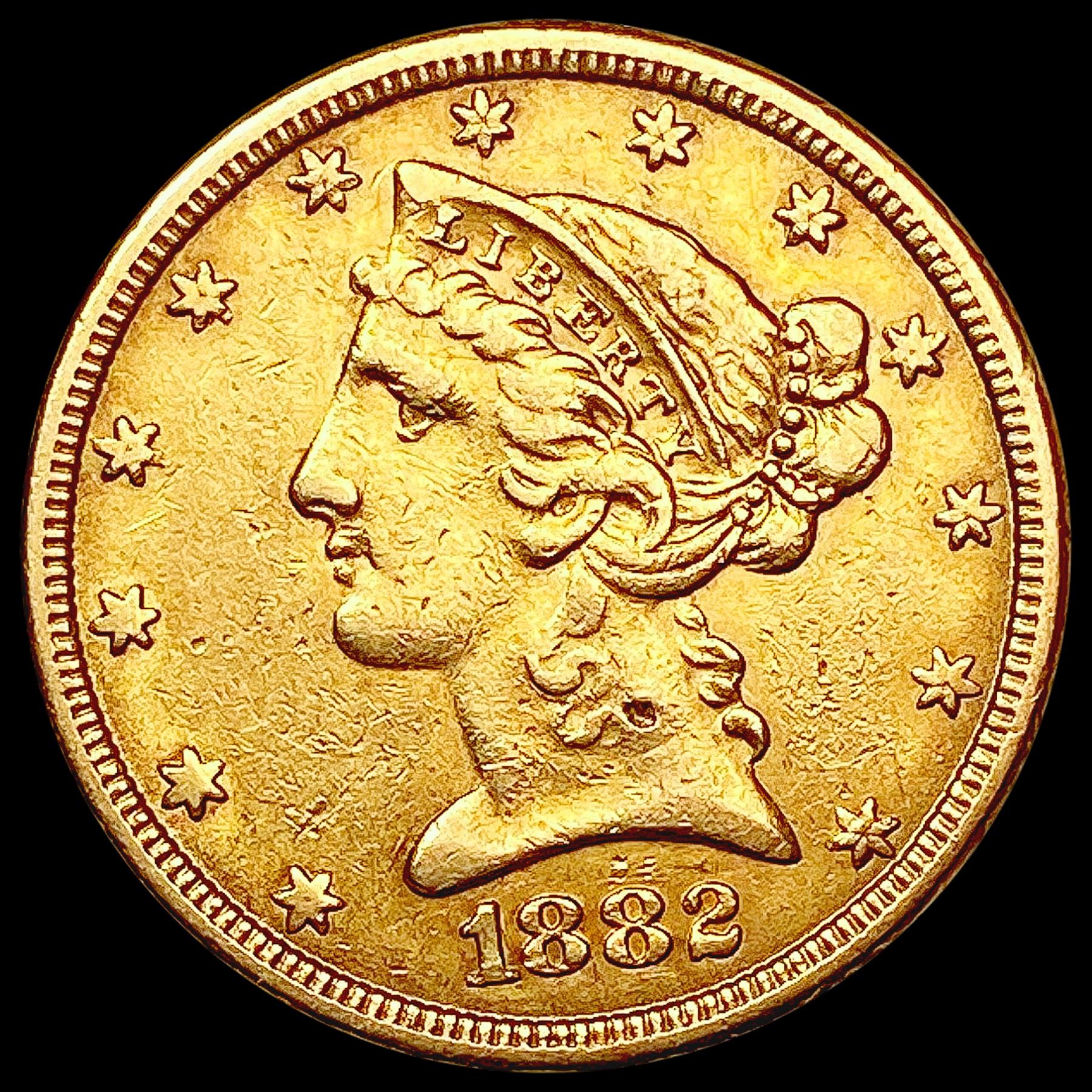 1882 $5 Gold Half Eagle CLOSELY UNCIRCULATED