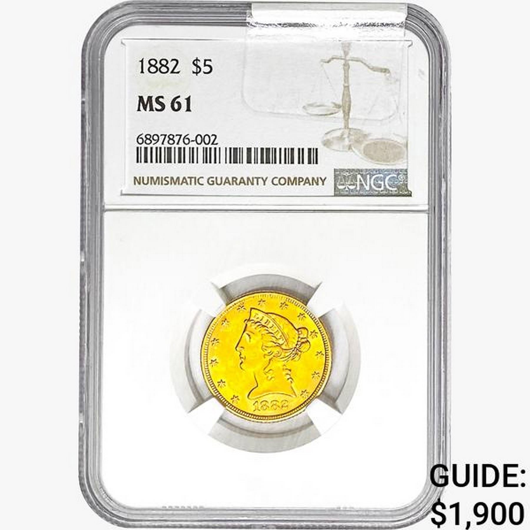 1882 $5 Gold Half Eagle NGC MS61