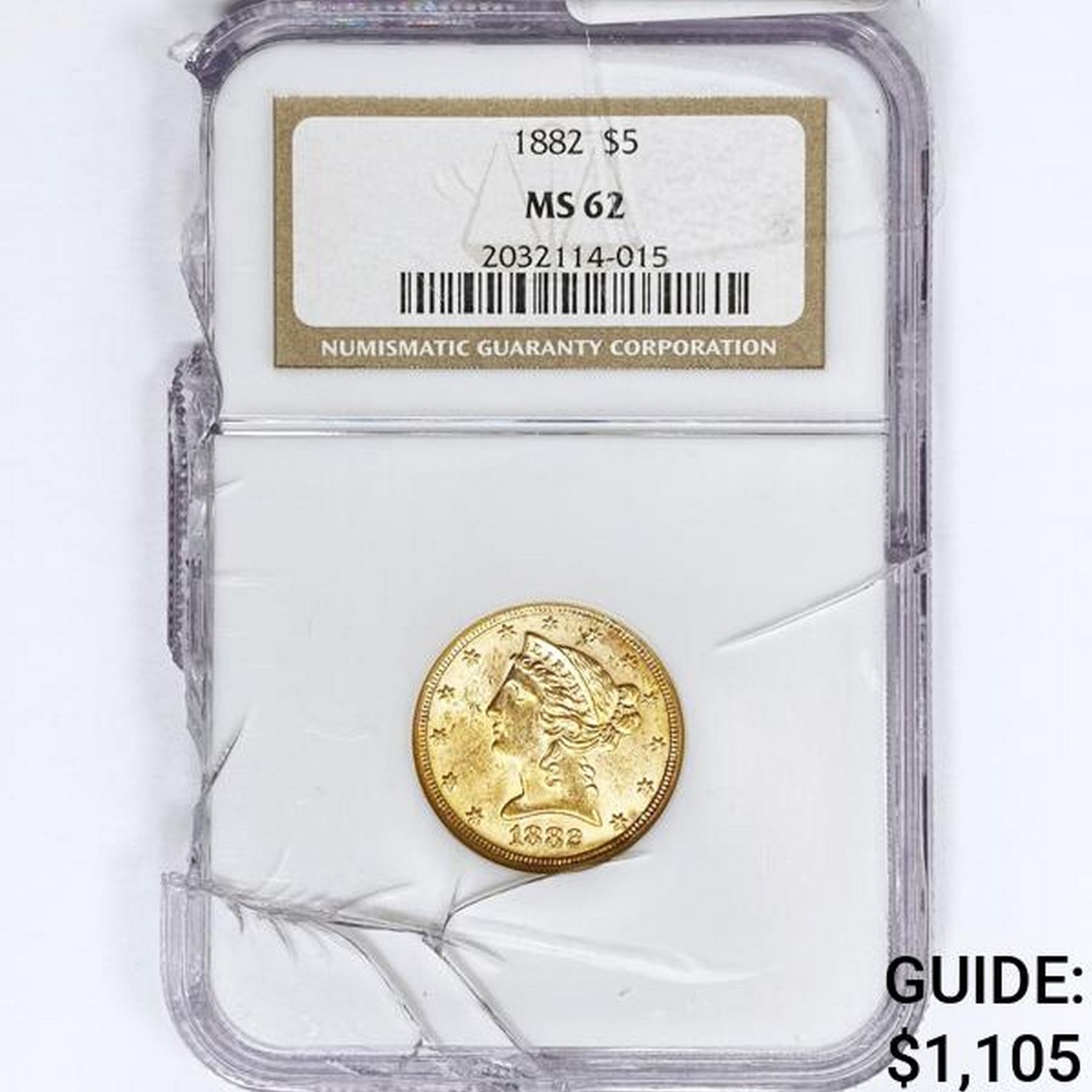 1882 $5 Gold Half Eagle NGC MS62