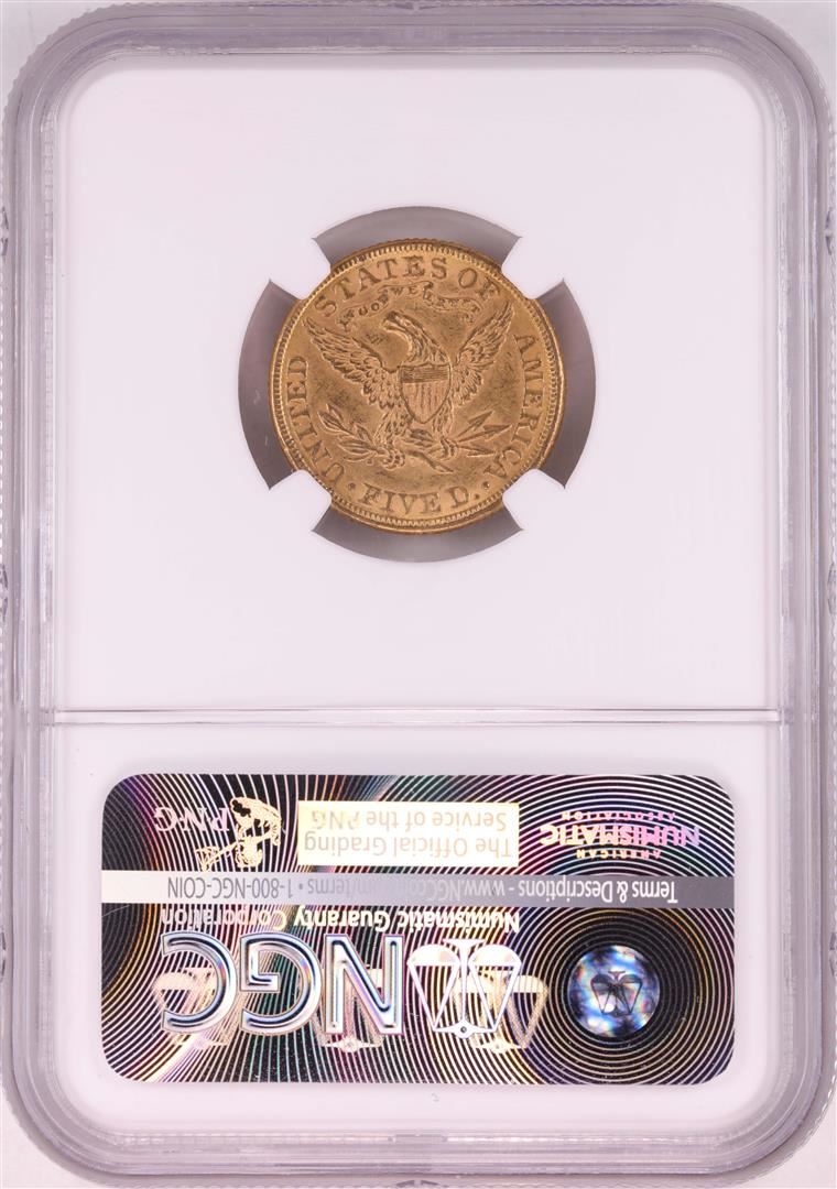 One 1882 $5 Liberty Head Half Eagle Coin NGC MS61. NGC Certified.
