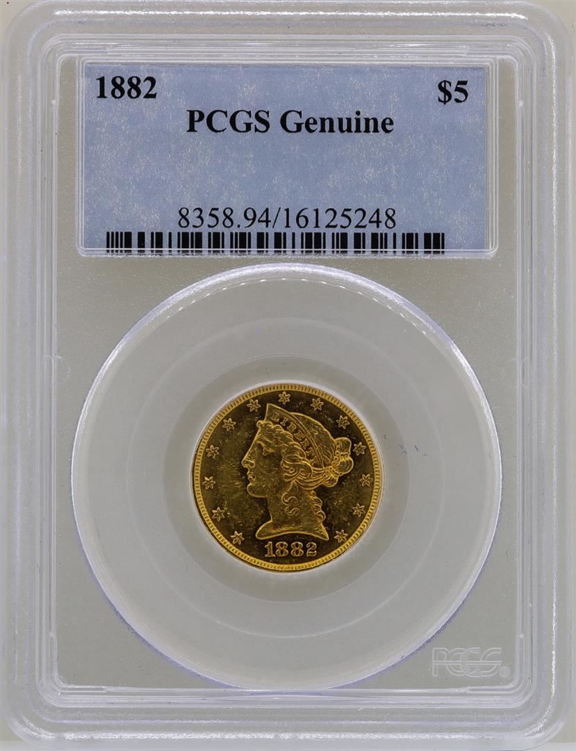 One 1882 $5 Liberty Head Half Eagle Gold Coin PCGS Genuine. PCGS Graded.