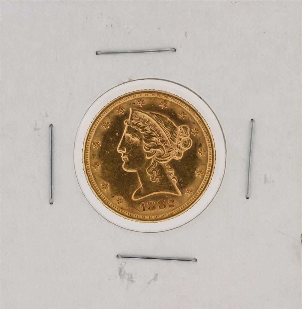 One 1882 $5 Liberty Head Half Eagle Coin.