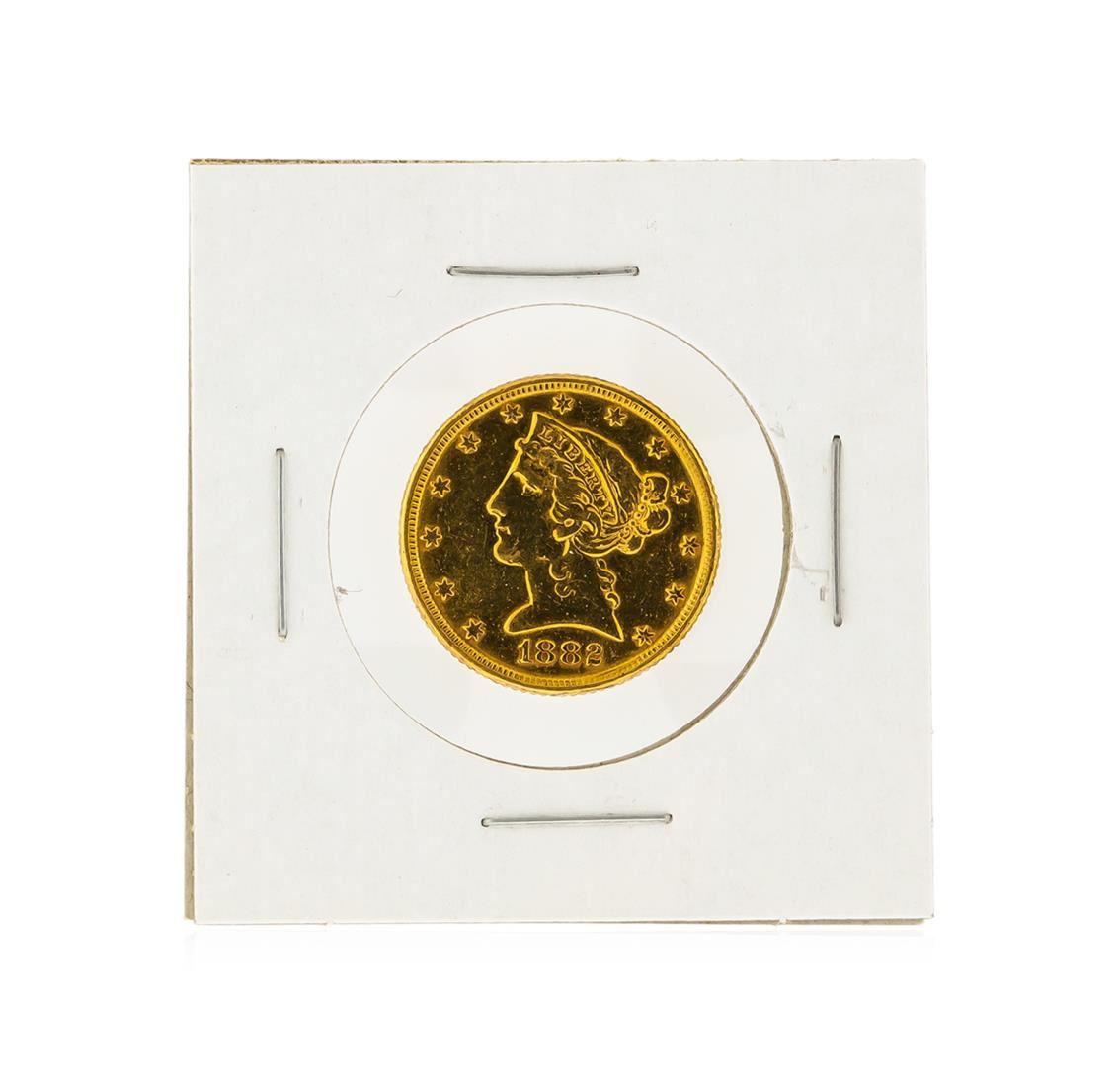 One 1882 $5 Liberty Head Half Eagle Gold Coin.