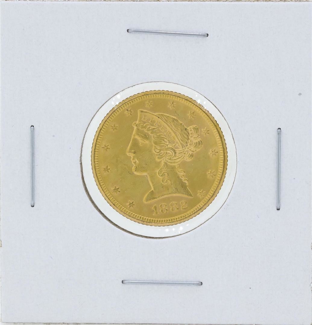 One 1882 $5 Liberty Head Half Eagle Gold Coin.