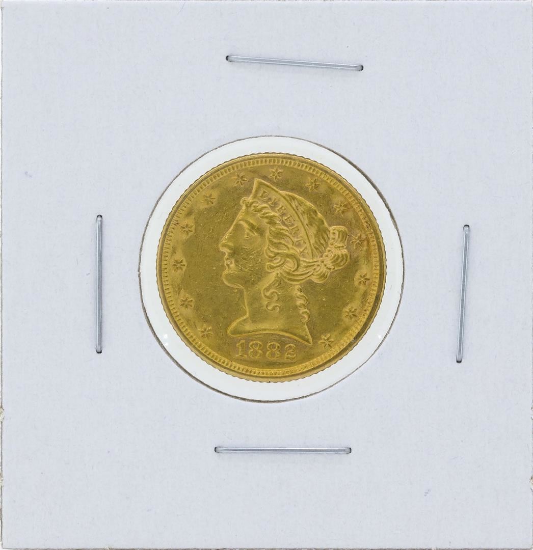 One 1882 $5 Liberty Head Half Eagle Gold Coin.