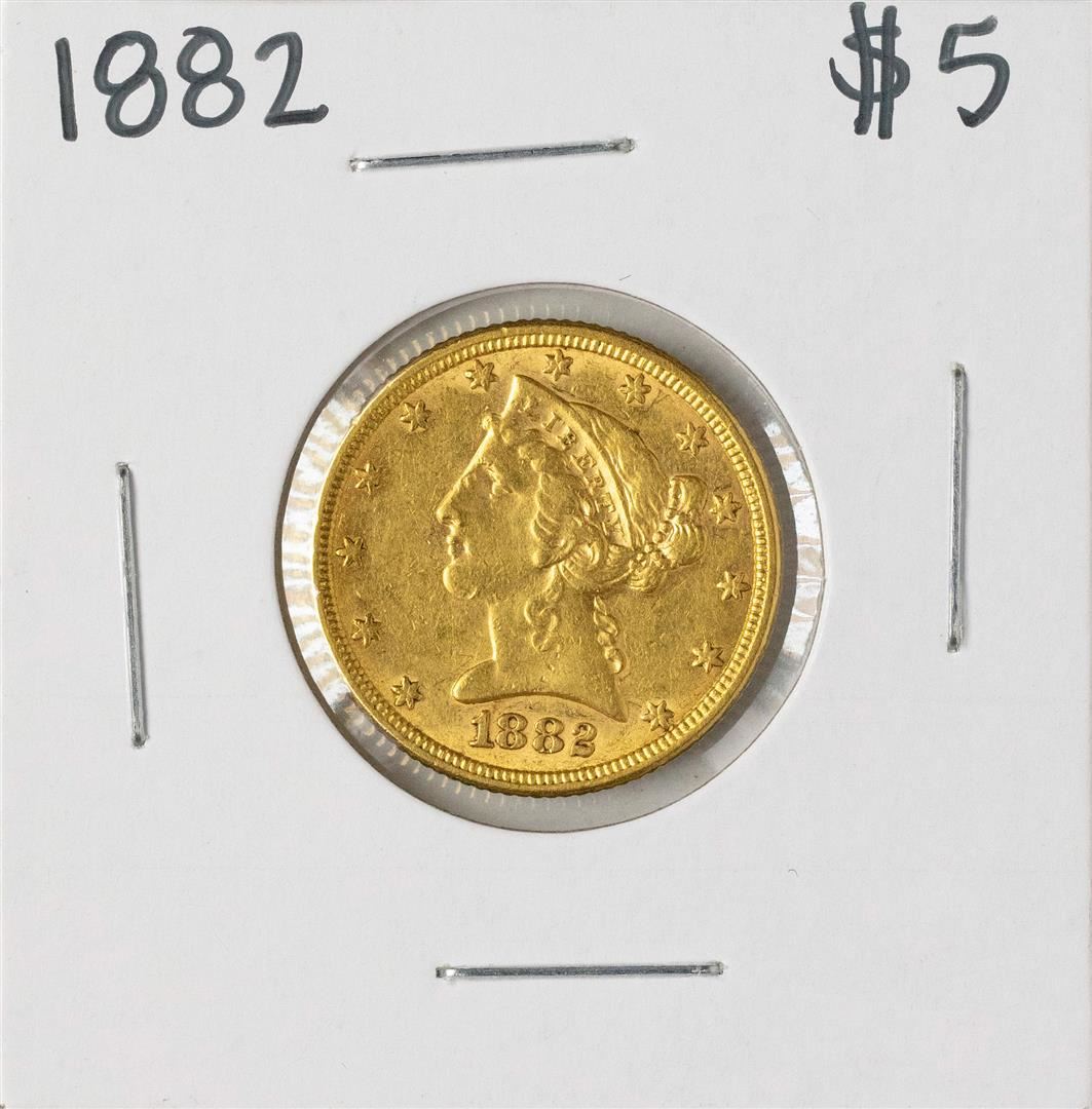 One 1882 $5 Liberty Head Half Eagle Gold Coin.