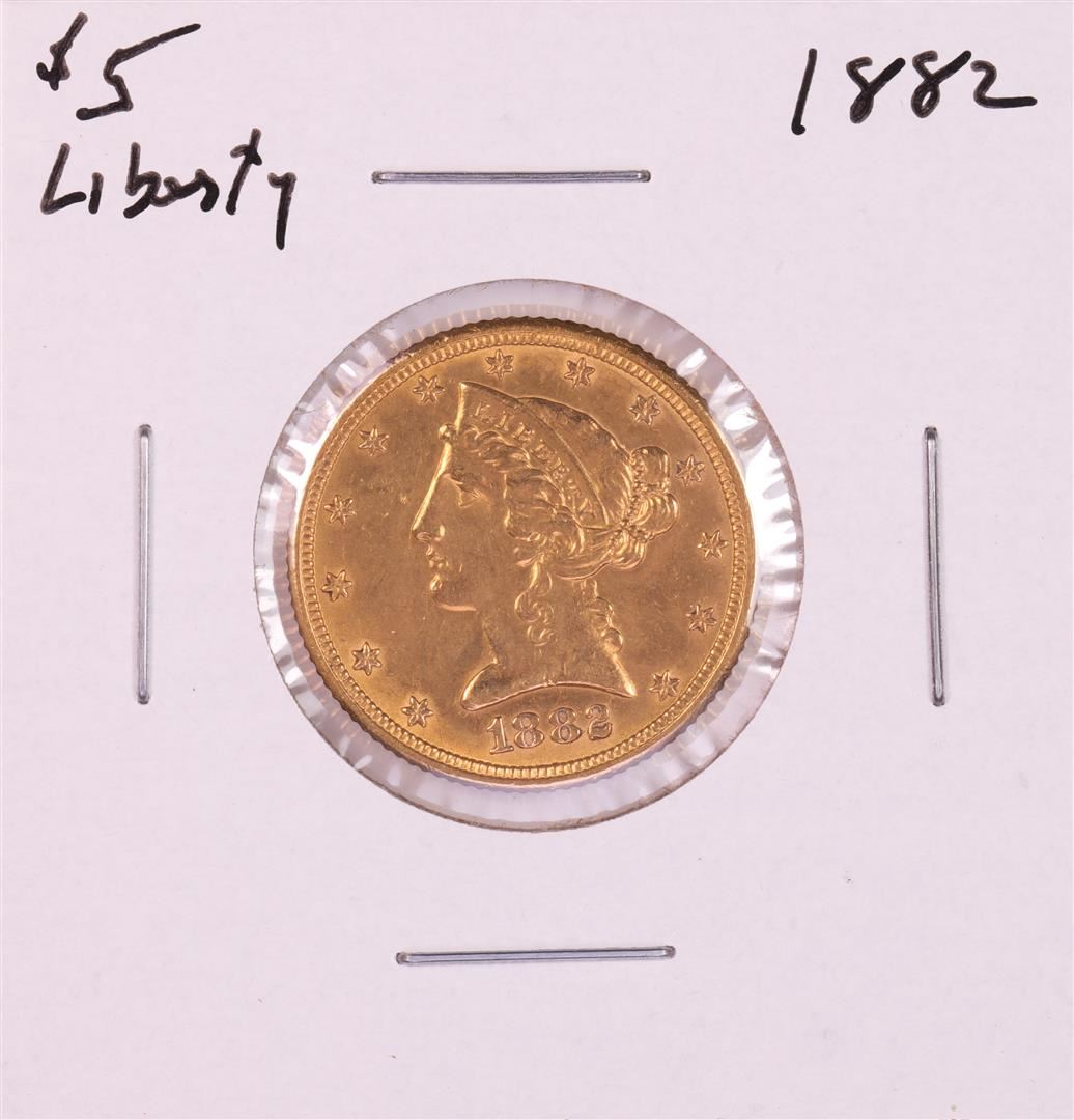 One 1882 $5 Liberty Head Half Eagle Gold Coin.
