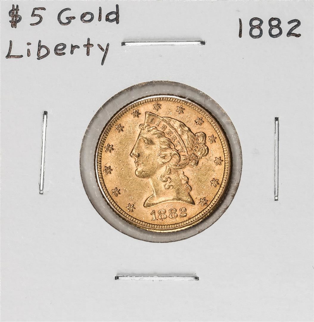 One 1882 $5 Liberty Head Half Eagle Gold Coin.