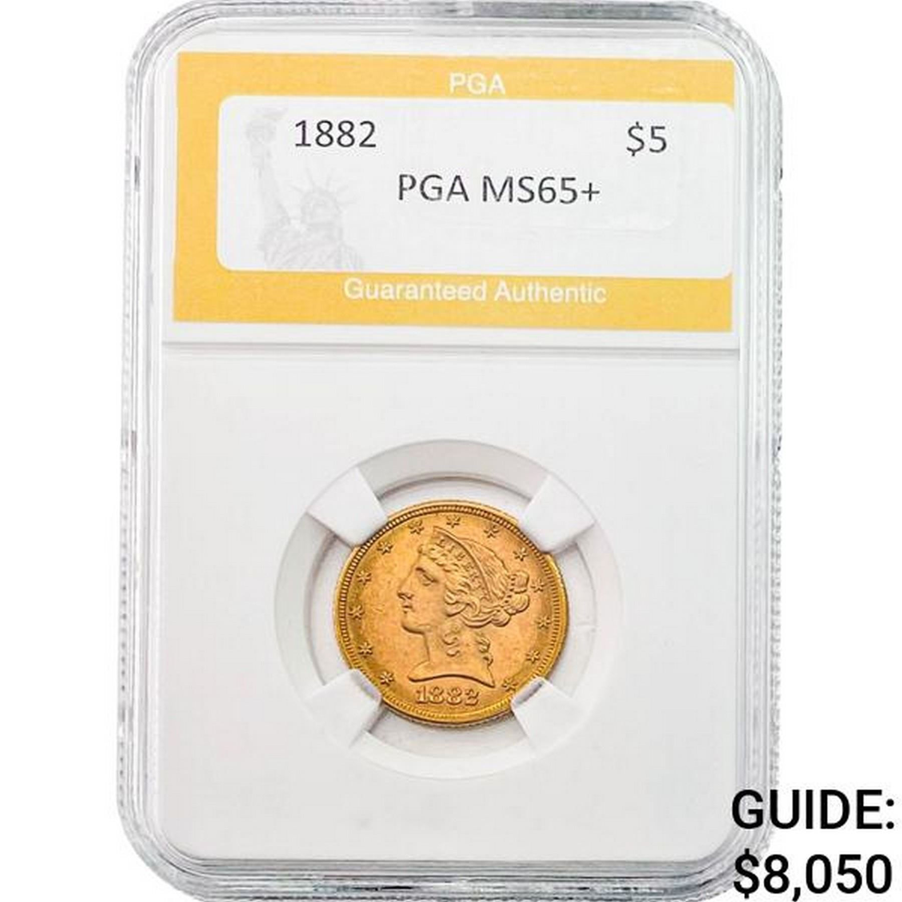 1882 $5 Liberty Head Half Eagle PGA MS65