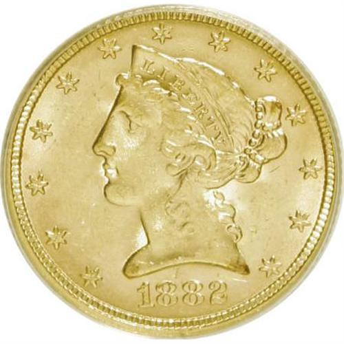 <B>1882 $5 MS61 ANACS.</B></I> NGC Census: (1201/3230). PCGS Population (537/1577). Mintage: 2,514,568. Numismedia Wsl. Price for NGC/PCGS coin in MS61: $325. (#8358)<BR><BR><B>Coin Engraver:</B> Christian Gobrecht<BR><BR><b>Shipping:</b> Coins & Currency (<a target="_blank" href="http://www.heritageauctions.com/common/shipping.php">view shipping information</a>)