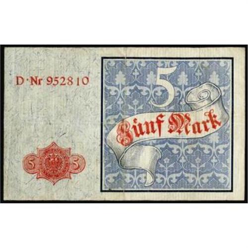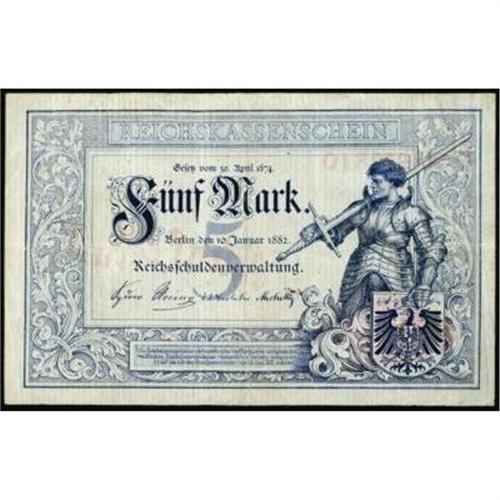 <style type="text/css"> body, td, th { font-family: Arial, Helvetica, sans-serif; font-size: 12px; color: #482424; margin: 0px; padding: 0px; } #header { background-image: url(http://www.bowersandmerena.com/ebay/images/template_v3_01.gif); clear: both; background-color: #590303; border-top-width: 2px; border-top-style: solid; border-top-color: #B38C4F; } #header #header_wrapper { height: 75px; clear: both; width: 800px; margin-right: auto; margin-left: auto; background-image: url(http://www.bowersandmerena.com/ebay/images/template_v3_03.gif); background-repeat: no-repeat; background-position: right; color: #F3EDCC; } #header #header_wrapper #header_logo { float: left; height: 75px; width: 444px; background-image: url(http://www.bowersandmerena.com/ebay/images/template_v3_02.gif); background-repeat: no-repeat; font-size: 10px; text-transform: capitalize; color: #B38C4F; } #header #header_wrapper #header_right { float: left; height: 75px; width: 356px; text-align: right; } #header #header_wrapper #header_right #headerLoginBtn { margin-bottom: 30px; } #header #header_wrapper #header_right input#txtSearch { color: #B49056; border: 1px solid #B49056; width: 175px; padding-top: 3px; padding-right: 3px; padding-bottom: 4px; padding-left: 3px; } #nav { height: 37px; background-image: url(http://www.bowersandmerena.com/ebay/images/template_v3_05.gif); clear: both; } #nav #nav_wrapper { height: 35px; width: 800px; margin-right: auto; margin-left: auto; border-left-width: 1px; border-left-style: solid; border-left-color: #B38C4F; } #nav #nav_wrapper a { padding-right: 15px; padding-left: 15px; border-right-width: 1px; border-right-style: solid; border-right-color: #B38C4F; height: 25px; padding-top: 10px; display: block; float: left; text-decoration: none; font-weight: bold; color: #5D0303; } #nav #nav_wrapper a:hover { color: #B38C4F; } #nav #nav_wrapper #search { float: right; padding-top: 7px; } #nav #nav_wrapper #search #txtSearch { font-family: Arial, Helvetica, sans-serif; font-size: 10px; text-transform: uppercase; color: #D2AE75; border: 1px solid #B38C4F; padding: 3px; } #content_bgd { background-image: url(http://www.bowersandmerena.com/ebay/images/template_v3_09.gif); background-repeat: repeat-y; background-position: center; padding-top: 15px; padding-bottom: 15px; background-color: #FBFBDB; } #content_wrapper { clear: both; height: auto; width: 800px; margin-right: auto; margin-left: auto; } .LotDetailWhite { line-height:normal; font-size:13px; font-family: arial,helvetica,sans-serif; color: White; font-weight: bold; } .LotDetailInformation { line-height:normal; font-size: 13px; font-family: arial,helvetica,sans-serif; } .LotDetailMessage { line-height:normal; font-size: 13px; font-family: arial,helvetica,sans-serif; color: red; } } tr.HeaderAuctionTitle td { color: #000000; font-weight: bold; padding: 2px; background-image: url(http://www.bowersandmerena.com/ebay/images/template_v3_05.gif); background-repeat: repeat-x; border-bottom-width: 1px; border-bottom-style: solid; border-bottom-color: #B38C4F; } table.AuctionSummary a, table.AuctionSummary a:link, table.AuctionSummary a:visited { color: #0000FF; text-decoration: none; } } td.tableHeaderLeft { border-left-width: 1px; border-left-style: solid; border-left-color: #B38C4F; } td.tableHeaderRight { border-right-width: 1px; border-right-style: solid; border-right-color: #B38C4F; } td.tableCellMiddle { border-left-width: 1px; border-left-style: solid; border-left-color: #B38C4F; border-right-width: 1px; border-right-style: solid; border-right-color: #B38C4F; padding: 5px; } tr.footer td { border-top-width: 1px; border-top-style: solid; border-top-color: #B38C4F; } </style> </head> <body> <div id="header"> <div id="header_wrapper"> <div id="header_logo"> </div> <div id="header_right"> </div> </div> </div> <div id="nav"> <div id="nav_wrapper"> <a href="http://www.bowersandmerena.com">Our eBayLive Auctions</a> <a href="#PaymentInfo">Payment Information</a> <a href="#ShippingInfo">Shipping Information</a> <a href="#About">About Bowers and Merena</a> </div> </div> <div id="content_bgd"> <div id="content_wrapper"> <table width="100%" border="0" cellpadding="5" cellspacing="0" class="AuctionSummary"> <tbody> <tr class="HeaderAuctionTitle" style="height: 25px;"> <td align="left" class="tableHeaderLeft" > </td> <td align="center" class="tableHeaderRight"> <span style="font-size: large;">Lot #2726. Germany. 1882 5 Mark. Imperial Treasury Note. Very Fine.</span> </td> </tr> <tr> <td colspan="3" class="tableCellMiddle"> P-4. A very scarce issue that is most commonly seen in this denomination as the 20 and 50 Mark denominations become exponentially tougher. This is a sound note with no problems and shows a Knight in Armor with a shield of Arms at the right. The reverse is the same light blue hue with dark red overprints and plentiful silk fibers coursing through the note.