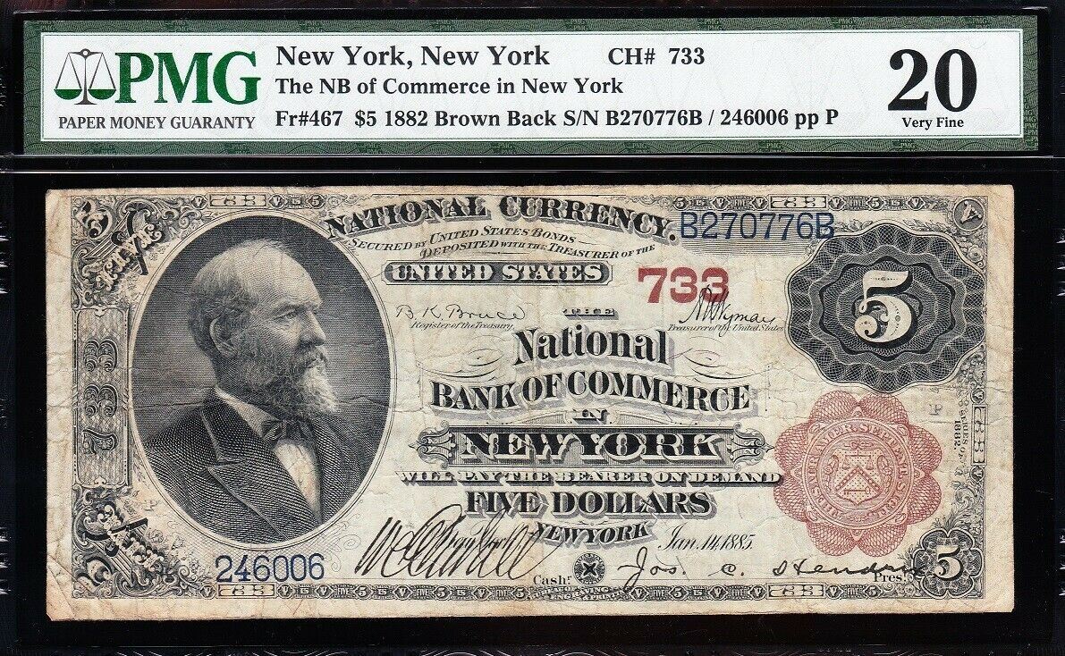 One 1882 $5 New York NY Nation Bank Note PMG 20.