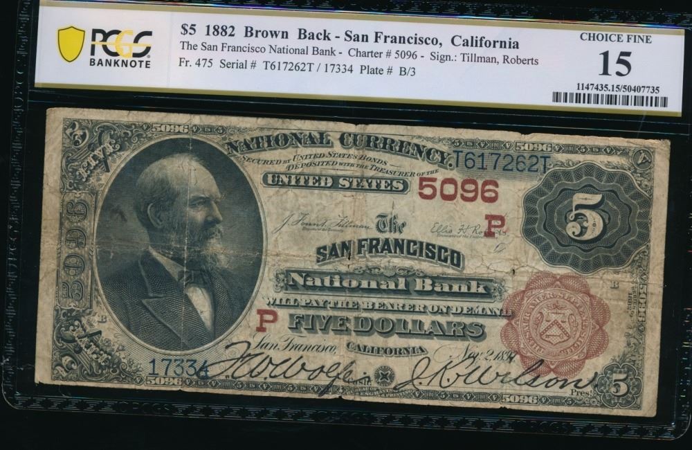 One 1882 $5 San Francisco CA National PCGS 15.