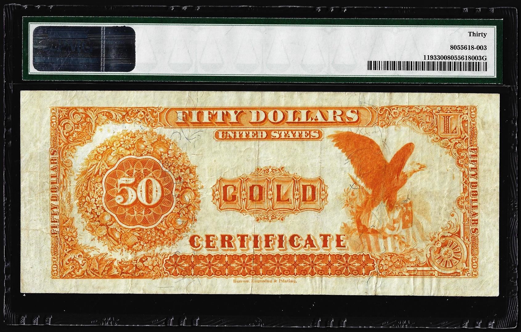 One 1882 $50 Gold Certificate Note Fr.1193 PCGS Very Fine 30. PCGS Graded.
