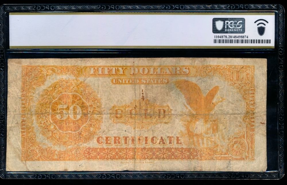 One 1882 $50 Gold Certificate PCGS 20.