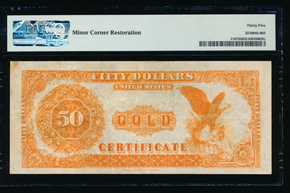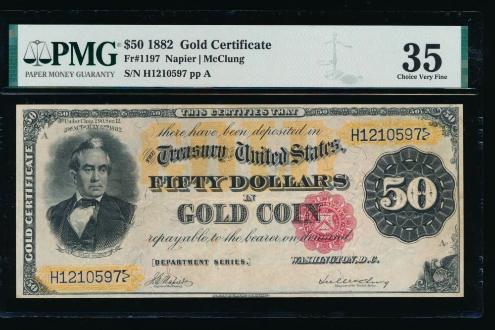 One 1882 $50 Gold Certificate PMG 35.