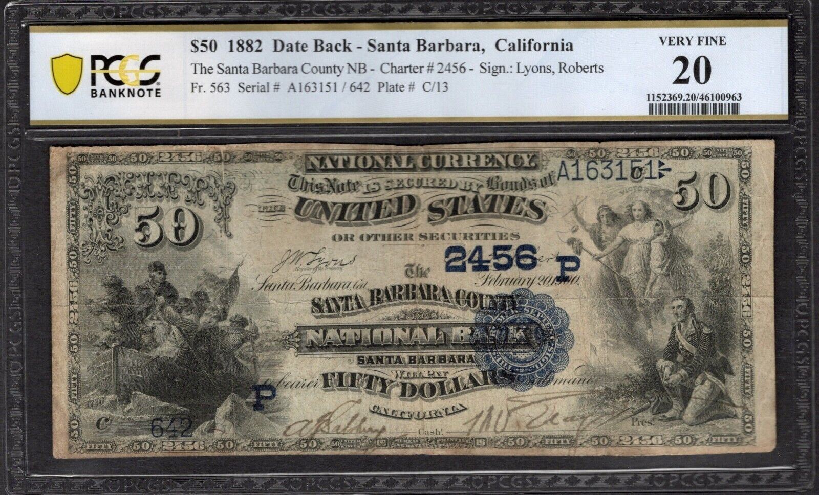 One 1882 $50 Santa Barbara CA National PCGS 20.