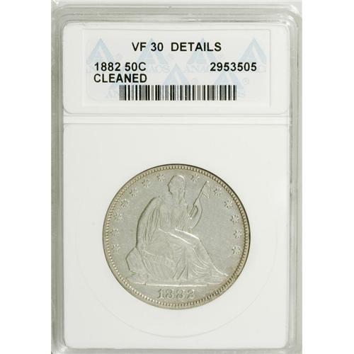 1882 50C --Cleaned--ANACS. VF30 Details. NGC Census