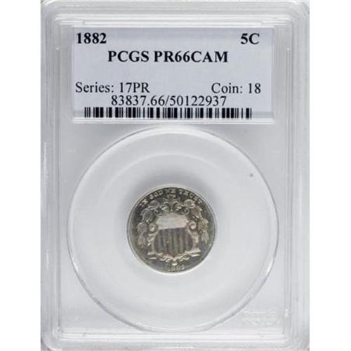 <B>1882 5C PR66 Cameo PCGS.</B></I> PCGS Population (54/13). NGC Census: (27/20). (#83837)<BR><BR><b>Shipping:</b> Coins & Currency (<a target="_blank" href="http://www.heritageauctions.com/common/shipping.php">view shipping information</a>\)