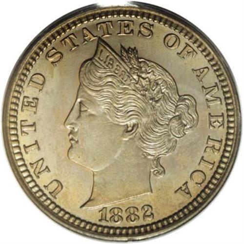 1882 5C Liberty Head Five Cents, Judd-1680,