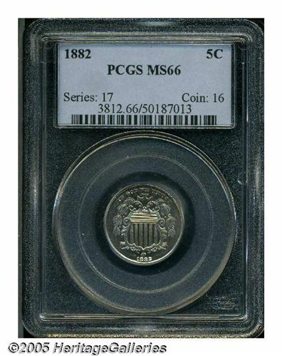 <B>1882<5C> MS66 PCGS.</B></I> Breen-2518. Filled 2. An excellent representative of the type. Sharply struck and untoned, with gleaming luster and carefully preserved surfaces. Just four pieces have been graded finer, by PCGS. Population: 57 in 66, 4 finer (4/05).