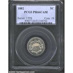 1882 5C PR66 Cameo PCGS. A sharply struck and essentially untoned Gem with good contrast and attract