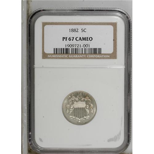 1882 5C PR67 Cameo NGC. This is a glittering, black an