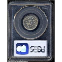 <table><tr><td><TABLE cellSpacing=0 cellPadding=0 width="100%" bgColor=#000000 border=0><TBODY> <TR><TD width="100%"><TABLE cellSpacing=1 cellPadding=3 width="100%" border=0><TBODY><TR><TD width="100%" bgColor=#79735c><FONT face=arial color=#ffffff size=3><B>Description</B> </FONT></TD></TR><TR><TD width="100%" bgColor=#ffffff><FONT face=arial size=2><B>1882 5C Shield Five Cents, Judd-1693, Pollock-1895, R.7, PR64 Cameo PCGS.</B></I> The dies are similar to those used on the regular issue 1882 Shield nickel, but the base of the shield is designed differently, lacking the ornamental ball. Struck in nickel with a plain edge. This modified design was also struck in copper, aluminum, and white metal. Deeply mirrored, the devices are also nicely frosted and give a strong contrast against the reflective surfaces. Brilliant throughout. The back of the holder is badly scratched and this side of the coin may not photograph well. As an aside, this would be a great coin to use as a test if you know some numismatic know-it-all. It's a very subtle difference between this pattern and a regular issue proof (this cataloger didn't pick up on the difference), and we would not be surprised if a few of these patterns still reside unrecognized in proof type sets that contain Shield nickels. </FONT></TD></TR></TBODY></TABLE></TD></TR></TBODY></TABLE><BR><A name=PricesRealized></A><TABLE cellSpacing=0 cellPadding=0 width="100%" bgColor=#000000 border=0><TBODY><TR><TD width="100%"><TABLE cellSpacing=1 cellPadding=3 width="100%" border=0><TBODY><TR><TD width="100%" bgColor=#79735c><A name=PR><FONT face=arial color=#ffffff size=3><B>Previous Prices from Heritage Auctions</B> </FONT></A></TD></TR><TR><TD bgColor=#f6f6ed><TABLE cellSpacing=0 cellPadding=0 width="100%" border=1><TBODY><TR><TD align=middle width="33%"><B>Date</B></TD><TD align=middle width="33%"><B>Service</B></TD><TD align=middle width="33%"><B>Price</B></TD></TR><TR bgColor=whitesmoke><TD width="33%"><B>09/19/2000</B></TD><TD width="33%">NGC</TD><TD width="33%">$2,700.00</TD></TR></TBODY></TABLE></TD></TR><TR><TD bgColor=#ffffff><FONT face=arial size=1 ?>PLEASE NOTE: All prices realized reflect the final hammer price PLUS the buyer's premium in auctions that charge a buyer's premium. Each item has a notation at the top of the listing indicating whether that lot included a buyer's premium. Example: A item that sells with a final hammer price of $100 and a 20% buyer's premium will display with a price realized of $120. All information listed is intended to be as accurate as possible, but errors are possible. Please use this guide carefully and inform us of any inaccuracies. </FONT></TD></TR></TBODY></TABLE></TD></TR></TBODY></TABLE><BR><TABLE cellSpacing=0 cellPadding=0 width="100%" bgColor=#000000 border=0><TBODY><TR><TD width="100%"><TABLE cellSpacing=1 cellPadding=3 width="100%" border=0><TBODY><TR><TD width="100%" bgColor=#79735c colSpan=6><FONT face=arial color=#ffffff size=3><B>Price Guide*</B> </FONT></TD></TR><TR bgColor=#f6f6ed><TD align=middle><B>Grade</B> </TD><TD align=middle><B>Coin World<BR>(Trends)</B> </TD><TD align=middle><B>Numismedia<BR>Retail</B> </TD><TD align=middle><B>Numismedia<BR>Wholesale</B> </TD><TD align=middle><B>Coin<BR>Universe</B> </TD><TD align=middle><B>Heritage<BR>Value Index</B> </TD></TR><TR bgColor=#ffffff><TD align=middle>63</TD><TD align=right>---</TD><TD align=right>---</TD><TD align=right>---</TD><TD align=right>---</TD><TD align=right>---</TD></TR><TR style="FONT-WEIGHT: bold" bgColor=#cccfdd><TD align=middle>64</TD><TD align=right>---</TD><TD align=right>---</TD><TD align=right>---</TD><TD align=right>---</TD><TD align=right>---</TD></TR><TR bgColor=#ffffff><TD align=middle>65</TD><TD align=right>---</TD><TD align=right>---</TD><TD align=right>---</TD><TD align=right>---</TD><TD align=right>---</TD></TR><TR bgColor=#ffffff><TD colSpan=6><FONT size=1>*All information listed is intended to be as accurate as possible, but errors are possible. No item may be returned or refused based on this information which is provided as a service to our customers. You should contact each pricing source directly to determine the accuracy of this information. </FONT></TD></TR></TBODY></TABLE></TD></TR></TBODY></TABLE><BR><TABLE cellSpacing=0 cellPadding=0 width="100%" bgColor=#000000 border=0><TBODY><TR><TD width="100%"><TABLE cellSpacing=1 cellPadding=3 width="100%" border=0><TBODY><TR><TD width="100%" bgColor=#79735c><FONT face=arial color=#ffffff size=3><B>Population Guide</B> </FONT></TD></TR><TR bgColor=#ffffff><TD align=middle><!-- Begin Output of Population Grid--><TABLE cellSpacing=0 cellPadding=0 width="100%" border=0><TBODY><TR><TD vAlign=center><TABLE cellSpacing=0 width="100%" border=1 cellsadding="3"><TBODY><TR><TD vAlign=center><TABLE cellSpacing=0 cellPadding=3 width="100%" border=1><TBODY><TR><TD vAlign=center align=middle bgColor=#f0f1e8 colSpan=2 <CENTER><FONT face=Arial size=2><B>PCGS Pop </B></FONT><CENTER></CENTER></TD><TD vAlign=center align=middle bgColor=#f0f1e8 colSpan=2><CENTER><FONT face=Arial size=2><B>NGC Pop</B></CENTER></FONT></TD></TR><TR><TD vAlign=center><FONT face=Arial size=2>(64)</FONT> </TD><TD vAlign=center align=right><FONT face=Arial size=2>4</FONT> </TD><TD vAlign=center><FONT face=Arial size=2>(64)</FONT> </TD><TD vAlign=center align=right><FONT face=Arial size=2>0</FONT> </TD></TR><TR><TD vAlign=center><FONT face=Arial size=2>(>64)</FONT> </TD><TD vAlign=center align=right><FONT face=Arial size=2>1</FONT> </TD><TD vAlign=center><FONT face=Arial size=2>(>64)</FONT> </TD><TD vAlign=center align=right><FONT face=Arial size=2>3</FONT> </TD></TR></TBODY></TABLE></TD></TR></TBODY></TABLE></TD></TR></TBODY></TABLE><!-- End Output of Population Grid--></TD></TR></TBODY></TABLE></TD></TR></TBODY></TABLE><BR><TABLE cellSpacing=0 cellPadding=0 width="100%" bgColor=#000000 border=0><TBODY><TR> Important notice: Heritage usually auctions material at the rate of 200-250 lots per hour. On some oc