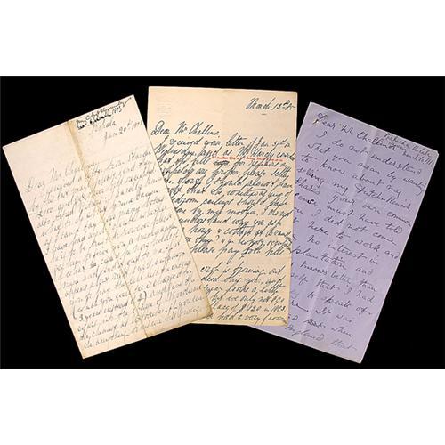 <Our item number 140018><B>Hawaiian Plantation Letters.</B> Three autograph letters to Mr. Challinor from J.R. and Clement Sneyd Key Mersley, 1882-85, 8 x 5 in., 10 pp. total, Kohala regarding selling shares of stock to invest in a plantation, and with many details about sugar cane, crop results on two plantations, plantation debt, investments in the Union Mills, etc. Good insight into the problems and pleasures of running a plantation in Hawaii. Slight soiling to one letter; overall fine. <BR>Estimated Value $300 - 500. <BR><BR>Our item number 140018<BR><IMAGES><P ALIGN="CENTER"><IMG SRC="http://www.goldbergcoins.net/liveauction/49jpegs/140018.jpg"> </P></IMAGES>