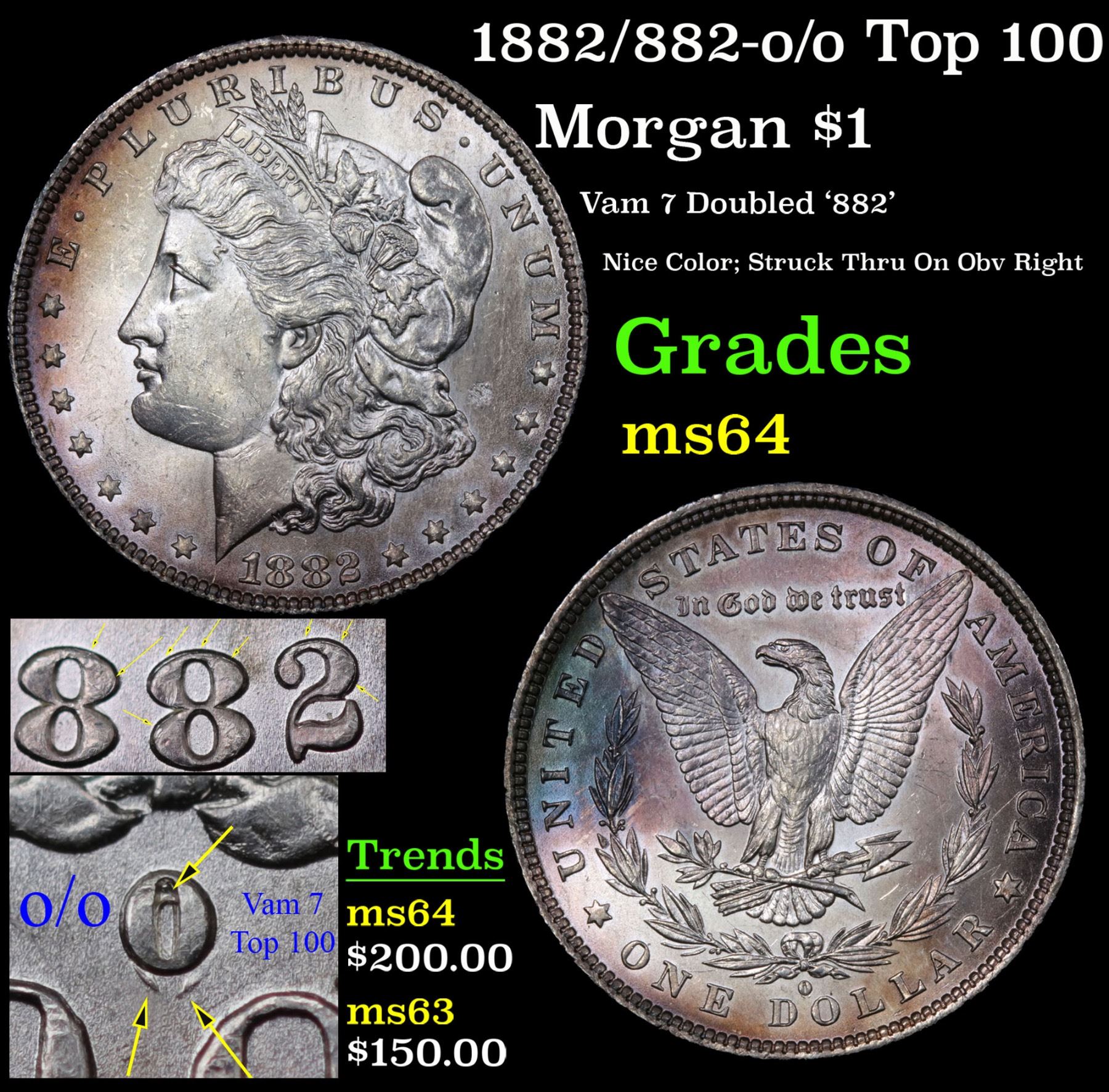 1882/882-o/o Top 100 Vam 7 Doubled '882' Nice Color; Struck Thru On Obv Right Morgan Dollar $1 Grades Choice Unc.