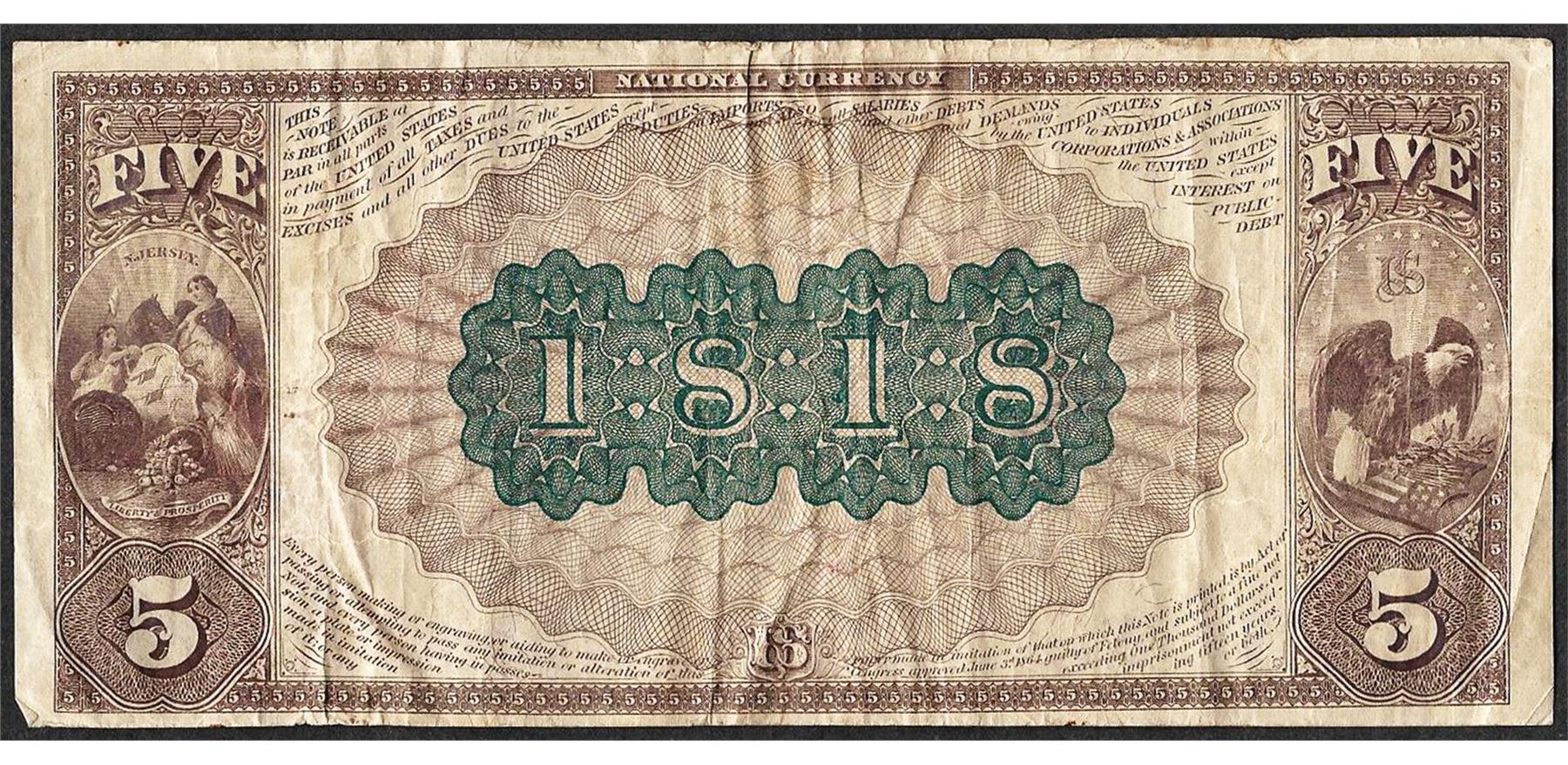 One 1882 BB $5 Merchants NB of Newark, NJ CH# 1818 National Currency Note.