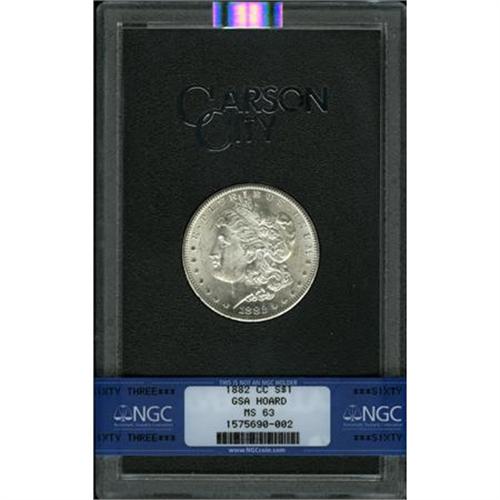 <B>1882-CC $1 MS63 NGC.</B></I> NGC Census: (2050/3708). PCGS Population (0/0). (#7134)<BR><BR><B>Coin Engraver:</B> George T. Morgan<BR><BR><b>Shipping:</b> Coins & Currency (<a target="_blank" href="http://www.heritageauctions.com/common/shipping.php">view shipping information</a>)