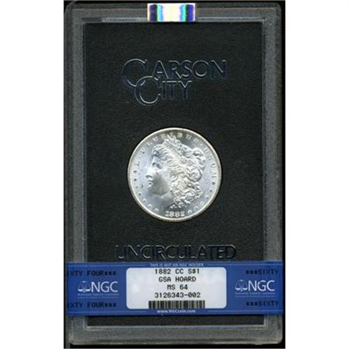 <B>1882-CC $1 MS64 NGC.</B></I> NGC Census: (2848/1186). PCGS Population (0/0). (#7134)<BR><BR><B>Coin Engraver:</B> George T. Morgan<BR><BR><b>Shipping:</b> Coins & Currency (<a target="_blank" href="http://www.heritageauctions.com/common/shipping.php">view shipping information</a>)
