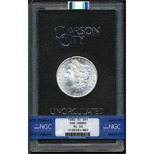 <B>1882-CC $1 MS64 NGC.</B></I> NGC Census: (2848/1186). PCGS Population (0/0). (#7134)<BR><BR><B>Coin Engraver:</B> George T. Morgan<BR><BR><b>Shipping:</b> Coins & Currency (<a target="_blank" href="http://www.heritageauctions.com/common/shipping.php">view shipping information</a>)