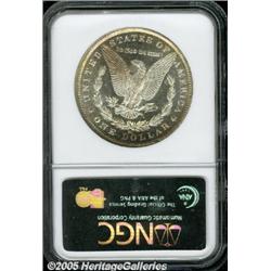 <B>1882-CC<img border='0' src='http://www.heritagecoins.com/images/star.gif' width=10 height=10>$1 MS65 Deep Mirror Prooflike NGC.</B></I> An impressive Deep Prooflike example of this popular, common date CC dollar. The fields display watery prooflike reflectivity and the devices are nicely frosted, yielding a strong cameo contrast on each side. Mostly brilliant, there is just a smidgen of golden color on each side.