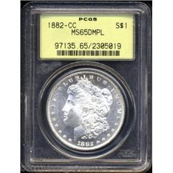 <TABLE cellSpacing=0 cellPadding=0 width="100%" bgColor=#000000 border=0><TBODY><TR><TD width="100%"><TABLE cellSpacing=1 cellPadding=3 width="100%" border=0><TBODY><TR><TD width="100%" bgColor=#79735c><FONT face=arial color=#ffffff size=3><B>Description</B> </FONT></TD></TR><TR><TD width="100%" bgColor=#ffffff><FONT face=arial size=2><B>1882-CC $1 MS65 Deep Mirror Prooflike PCGS.</B></I> Brilliant white with a near-flawless strike. The minimally marked surfaces are further enhanced by frosted devices providing nice cameo contrast with the mirrored fields. </FONT></TD></TR></TBODY></TABLE></TD></TR></TBODY></TABLE><BR><A name=PricesRealized></A><TABLE cellSpacing=0 cellPadding=0 width="100%" bgColor=#000000 border=0><TBODY><TR><TD width="100%"><TABLE cellSpacing=1 cellPadding=3 width="100%" border=0><TBODY><TR><TD width="100%" bgColor=#79735c><A name=PR><FONT face=arial color=#ffffff size=3><B>Previous Prices from Heritage Auctions</B> </FONT></A></TD></TR><TR><TD bgColor=#f6f6ed><TABLE cellSpacing=0 cellPadding=0 width="100%" border=1><TBODY><TR><TD align=middle width="33%"><B>Date</B></TD><TD align=middle width="33%"><B>Service</B></TD><TD align=middle width="33%"><B>Price</B></TD></TR><TR bgColor=whitesmoke><TD width="33%"><B>01/12/2002</B></TD><TD width="33%">PCGS</TD><TD width="33%">$632.50</TD></TR><TR bgColor=whitesmoke><TD width="33%"><B>09/01/1999</B></TD><TD width="33%">PCGS</TD><TD width="33%">$604.00</TD></TR><TR bgColor=whitesmoke><TD width="33%"><B>01/18/2000</B></TD><TD width="33%">PCGS</TD><TD width="33%">$460.00</TD></TR><TR bgColor=whitesmoke><TD width="33%"><B>07/30/2002</B></TD><TD width="33%">NGC</TD><TD width="33%">$977.50</TD></TR><TR bgColor=whitesmoke><TD width="33%"><B>07/29/2002</B></TD><TD width="33%">ANACS</TD><TD width="33%">$471.50</TD></TR><TR bgColor=whitesmoke><TD width="33%"><B>02/23/2002</B></TD><TD width="33%">ANACS</TD><TD width="33%">$345.00</TD></TR><TR bgColor=whitesmoke><TD width="33%"><B>08/14/1999</B></TD><TD width="33%">ANACS</TD><TD width="33%">$345.00</TD></TR><TR bgColor=whitesmoke><TD width="33%"><B>03/23/2003</B></TD><TD width="33%">ANACS</TD><TD width="33%">$805.00</TD></TR></TBODY></TABLE></TD></TR><TR><TD bgColor=#ffffff><FONT face=arial size=1 ?>PLEASE NOTE: All prices realized reflect the final hammer price PLUS the buyer's premium in auctions that charge a buyer's premium. Each item has a notation at the top of the listing indicating whether that lot included a buyer's premium. Example: A item that sells with a final hammer price of $100 and a 20% buyer's premium will display with a price realized of $120. All information listed is intended to be as accurate as possible, but errors are possible. Please use this guide carefully and inform us of any inaccuracies. </FONT></TD></TR></TBODY></TABLE></TD></TR></TBODY></TABLE><BR><TABLE cellSpacing=0 cellPadding=0 width="100%" bgColor=#000000 border=0><TBODY><TR><TD width="100%"><TABLE cellSpacing=1 cellPadding=3 width="100%" border=0><TBODY><TR><TD width="100%" bgColor=#79735c colSpan=6><FONT face=arial color=#ffffff size=3><B>Price Guide*</B> </FONT></TD></TR><TR bgColor=#f6f6ed><TD align=middle><B>Grade</B> </TD><TD align=middle><B>Coin World<BR>(Trends)</B> </TD><TD align=middle><B>Numismedia<BR>Retail</B> </TD><TD align=middle><B>Numismedia<BR>Wholesale</B> </TD><TD align=middle><B>Coin<BR>Universe</B> </TD><TD align=middle><B>Heritage<BR>Value Index</B> </TD></TR><TR bgColor=#ffffff><TD align=middle>64</TD><TD align=right>$350.00</TD><TD align=right>$275.00</TD><TD align=right>$220.00</TD><TD align=right>$215.00</TD><TD align=right>$232.00</TD></TR><TR style="FONT-WEIGHT: bold" bgColor=#cccfdd><TD align=middle>65</TD><TD align=right>$1,100.00</TD><TD align=right>$970.00</TD><TD align=right>$775.00</TD><TD align=right>$800.00</TD><TD align=right>$723.13</TD></TR><TR bgColor=#ffffff><TD align=middle>66</TD><TD align=right>---</TD><TD align=right>---</TD><TD align=right>$2,725.00</TD><TD align=right>$5,000.00</TD><TD align=right>$3,500.00</TD></TR><TR bgColor=#ffffff><TD colSpan=6><FONT size=1>*All information listed is intended to be as accurate as possible, but errors are possible. No item may be returned or refused based on this information which is provided as a service to our customers. You should contact each pricing source directly to determine the accuracy of this information. </FONT></TD></TR></TBODY></TABLE></TD></TR></TBODY></TABLE><BR><TABLE cellSpacing=0 cellPadding=0 width="100%" bgColor=#000000 border=0><TBODY><TR><TD width="100%"><TABLE cellSpacing=1 cellPadding=3 width="100%" border=0><TBODY><TR><TD width="100%" bgColor=#79735c><FONT face=arial color=#ffffff size=3><B>Population Guide</B> </FONT></TD></TR><TR bgColor=#ffffff><TD align=middle><!-- Begin Output of Population Grid--><TABLE cellSpacing=0 cellPadding=0 width="100%" border=0><TBODY><TR><TD vAlign=center><TABLE cellSpacing=0 width="100%" border=1 cellsadding="3"><TBODY><TR><TD vAlign=center><TABLE cellSpacing=0 cellPadding=3 width="100%" border=1><TBODY><TR><TD vAlign=center align=middle bgColor=#f0f1e8 colSpan=2 <CENTER><FONT face=Arial size=2><B>PCGS Pop </B></FONT><CENTER></CENTER></TD><TD vAlign=center align=middle bgColor=#f0f1e8 colSpan=2><CENTER><FONT face=Arial size=2><B>NGC Pop</B></CENTER></FONT></TD></TR><TR><TD vAlign=center><FONT face=Arial size=2>(65)</FONT> </TD><TD vAlign=center align=right><FONT face=Arial size=2>210</FONT> </TD><TD vAlign=center><FONT face=Arial size=2>(65)</FONT> </TD><TD vAlign=center align=right><FONT face=Arial size=2>72</FONT> </TD></TR><TR><TD vAlign=center><FONT face=Arial size=2>(>65)</FONT> </TD><TD vAlign=center align=right><FONT face=Arial size=2>50</FONT> </TD><TD vAlign=center><FONT face=Arial size=2>(>65)</FONT> </TD><TD vAlign=center align=right><FONT face=Arial size=2>4</FONT> </TD></TR></TBODY></TABLE></TD></TR></TBODY></TABLE></TD></TR></TBODY></TABLE><!-- End Output of Population Grid--> Important notice: Heritage usually auctions material at the rate of 20