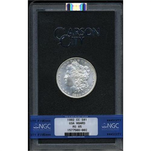 <B>1882-CC $1 MS65 NGC.</B></I> NGC Census: (2223/489). PCGS Population (4119/997). Mintage: 1,133,000. Numismedia Wsl. Price for NGC/PCGS coin in MS65: $392. (#7134)<BR><BR><B>Coin Engraver:</B> George T. Morgan<BR><BR><b>Shipping:</b> Coins & Currency (<a target="_blank" href="http://www.heritageauctions.com/common/shipping.php">view shipping information</a>)