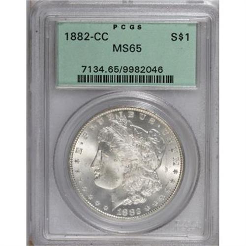 <B>1882-CC $1 MS65 PCGS.</B></I> PCGS Population (4070/982). NGC Census: (2179/478). Mintage: 1,133,000. Numismedia Wsl. Price for NGC/PCGS coin in MS65: $392. (#7134)<BR><BR><B>Coin Engraver:</B> George T. Morgan<BR><BR><b>Shipping:</b> Coins & Currency (<a target="_blank" href="http://www.heritageauctions.com/common/shipping.php">view shipping information</a>)