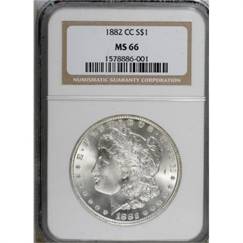 <B>1882-CC $1 MS66 NGC.</B></I> Pleasingly defined overall with vibrant luster and minimal patina. This lovely Carson City dollar shows only a touch of weakness at the highpoints, and the surfaces display more luster grazes than actual marks.<BR><BR><B>Coin Engraver:</B> George T. Morgan<BR><BR><b>Shipping:</b> Coins & Currency (<a target="_blank" href="http://www.heritageauctions.com/common/shipping.php">view shipping information</a>)