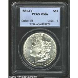 <TR><TD width="100%"><TABLE cellSpacing=1 cellPadding=3 width="100%" border=0><TBODY><TR><TD width="100%" bgColor=#79735c><FONT face=arial color=#ffffff size=3><B>Description</B> </FONT></TD></TR><TR><TD width="100%" bgColor=#ffffff><FONT face=arial size=2><B>1882-CC $1 MS66 PCGS.</B></I> The brilliant, gleaming surfaces, with full flowing luster which rolls around the devices, while exhibiting great cartwheel effects, are the most immediately noticeable element of this premium quality Gem. There are a few insignificant blemishes on each side, the most notable being a small luster graze next to Liberty's mouth, but none of these are much of a distraction. </FONT></TD></TR></TBODY></TABLE></TD></TR></TBODY></TABLE><BR><A name=PricesRealized></A><TABLE cellSpacing=0 cellPadding=0 width="100%" bgColor=#000000 border=0><TBODY><TR><TD width="100%"><TABLE cellSpacing=1 cellPadding=3 width="100%" border=0><TBODY><TR><TD width="100%" bgColor=#79735c><A name=PR><FONT face=arial color=#ffffff size=3><B>Previous Prices from Heritage Auctions</B> </FONT></A></TD></TR><TR><TD bgColor=#f6f6ed><TABLE cellSpacing=0 cellPadding=0 width="100%" border=1><TBODY><TR><TD align=middle width="33%"><B>Date</B></TD><TD align=middle width="33%"><B>Service</B></TD><TD align=middle width="33%"><B>Price</B></TD></TR><TR bgColor=whitesmoke><TD width="33%"><B>01/21/2003</B></TD><TD width="33%">PCGS</TD><TD width="33%">$977.50</TD></TR><TR bgColor=whitesmoke><TD width="33%"><B>01/11/2003</B></TD><TD width="33%">PCGS</TD><TD width="33%">$948.75</TD></TR><TR bgColor=whitesmoke><TD width="33%"><B>01/11/2003</B></TD><TD width="33%">PCGS</TD><TD width="33%">$948.75</TD></TR><TR bgColor=whitesmoke><TD width="33%"><B>01/11/2003</B></TD><TD width="33%">PCGS</TD><TD width="33%">$1,121.25</TD></TR><TR bgColor=whitesmoke><TD width="33%"><B>11/23/2002</B></TD><TD width="33%">PCGS</TD><TD width="33%">$977.50</TD></TR><TR bgColor=whitesmoke><TD width="33%"><B>11/23/2002</B></TD><TD width="33%">PCGS</TD><TD width="33%">$977.50</TD></TR><TR bgColor=whitesmoke><TD width="33%"><B>09/28/2002</B></TD><TD width="33%">PCGS</TD><TD width="33%">$1,092.50</TD></TR><TR bgColor=whitesmoke><TD width="33%"><B>09/28/2002</B></TD><TD width="33%">PCGS</TD><TD width="33%">$977.50</TD></TR><TR bgColor=whitesmoke><TD width="33%"><B>09/28/2002</B></TD><TD width="33%">PCGS</TD><TD width="33%">$977.50</TD></TR><TR bgColor=whitesmoke><TD width="33%"><B>08/27/2002</B></TD><TD width="33%">PCGS</TD><TD width="33%">$977.50</TD></TR><TR bgColor=whitesmoke><TD width="33%"><B>02/28/2002</B></TD><TD width="33%">PCGS</TD><TD width="33%">$1,081.00</TD></TR><TR bgColor=whitesmoke><TD width="33%"><B>02/28/2002</B></TD><TD width="33%">PCGS</TD><TD width="33%">$1,081.00</TD></TR><TR bgColor=whitesmoke><TD width="33%"><B>02/01/2001</B></TD><TD width="33%">PCGS</TD><TD width="33%">$1,006.00</TD></TR><TR bgColor=whitesmoke><TD width="33%"><B>03/01/2001</B></TD><TD width="33%">PCGS</TD><TD width="33%">$1,133.00</TD></TR><TR bgColor=whitesmoke><TD width="33%"><B>03/01/2001</B></TD><TD width="33%">PCGS</TD><TD width="33%">$1,133.00</TD></TR><TR bgColor=whitesmoke><TD width="33%"><B>01/01/2001</B></TD><TD width="33%">PCGS</TD><TD width="33%">$1,035.00</TD></TR><TR bgColor=whitesmoke><TD width="33%"><B>06/08/2002</B></TD><TD width="33%">PCGS</TD><TD width="33%">$1,207.50</TD></TR><TR bgColor=whitesmoke><TD width="33%"><B>06/08/2002</B></TD><TD width="33%">PCGS</TD><TD width="33%">$1,207.50</TD></TR><TR bgColor=whitesmoke><TD width="33%"><B>06/08/2002</B></TD><TD width="33%">PCGS</TD><TD width="33%">$891.25</TD></TR><TR bgColor=whitesmoke><TD width="33%"><B>02/23/2002</B></TD><TD width="33%">PCGS</TD><TD width="33%">$1,092.50</TD></TR><TR bgColor=whitesmoke><TD width="33%"><B>02/23/2002</B></TD><TD width="33%">PCGS</TD><TD width="33%">$1,092.50</TD></TR><TR bgColor=whitesmoke><TD width="33%"><B>02/12/1999</B></TD><TD width="33%">PCGS</TD><TD width="33%">$1,437.50</TD></TR><TR bgColor=whitesmoke><TD width="33%"><B>05/05/2000</B></TD><TD width="33%">PCGS</TD><TD width="33%">$833.75</TD></TR><TR bgColor=whitesmoke><TD width="33%"><B>05/05/2000</B></TD><TD width="33%">PCGS</TD><TD width="33%">$833.75</TD></TR><TR bgColor=whitesmoke><TD width="33%"><B>08/07/1998</B></TD><TD width="33%">PCGS</TD><TD width="33%">$1,265.00</TD></TR><TR bgColor=whitesmoke><TD width="33%"><B>01/06/1996</B></TD><TD width="33%">PCGS</TD><TD width="33%">$632.50</TD></TR><TR bgColor=whitesmoke><TD width="33%"><B>01/06/1996</B></TD><TD width="33%">PCGS</TD><TD width="33%">$632.50</TD></TR><TR bgColor=whitesmoke><TD width="33%"><B>05/05/2000</B></TD><TD width="33%">PCGS</TD><TD width="33%">$862.50</TD></TR><TR bgColor=whitesmoke><TD width="33%"><B>03/01/1998</B></TD><TD width="33%">PCGS</TD><TD width="33%">$1,100.00</TD></TR><TR bgColor=whitesmoke><TD width="33%"><B>03/01/1998</B></TD><TD width="33%">PCGS</TD><TD width="33%">$1,100.00</TD></TR><TR bgColor=whitesmoke><TD width="33%"><B>11/01/1998</B></TD><TD width="33%">PCGS</TD><TD width="33%">$1,035.00</TD></TR><TR bgColor=whitesmoke><TD width="33%"><B>03/01/2000</B></TD><TD width="33%">PCGS</TD><TD width="33%">$805.00</TD></TR><TR bgColor=whitesmoke><TD width="33%"><B>03/01/2000</B></TD><TD width="33%">PCGS</TD><TD width="33%">$805.00</TD></TR><TR bgColor=whitesmoke><TD width="33%"><B>05/31/2001</B></TD><TD width="33%">PCGS</TD><TD width="33%">$920.00</TD></TR><TR bgColor=whitesmoke><TD width="33%"><B>02/20/2001</B></TD><TD width="33%">PCGS</TD><TD width="33%">$925.00</TD></TR><TR bgColor=whitesmoke><TD width="33%"><B>02/20/2001</B></TD><TD width="33%">PCGS</TD><TD width="33%">$925.00</TD></TR><TR bgColor=whitesmoke><TD width="33%"><B>02/23/2001</B></TD><TD width="33%">PCGS</TD><TD width="33%">$1,063.75</TD></TR><TR bgColor=whitesmoke><TD width="33%"><B>08/07/2000</B></TD><TD width="33%">PCGS</TD><TD width="33%">$862.50</TD></TR><TR bgColor=whitesmoke><TD width="33%"><B>08/07/2000</B></TD><TD width="33%">PCGS</TD><TD width="33%">$862.50</TD></TR><TR bgColor=whi