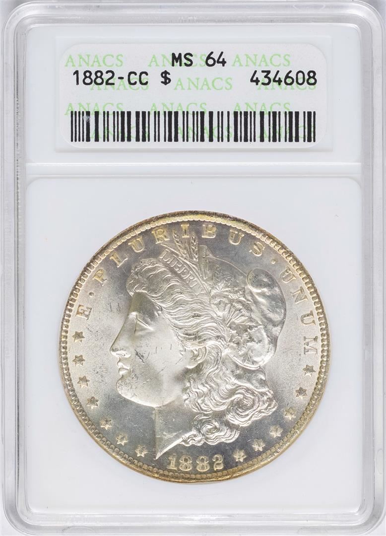 One 1882-CC $1 Morgan Silver Dollar Coin ANACS MS64. ANACS Certified.