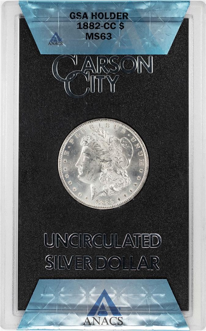 One 1882-CC $1 Morgan Silver Dollar Coin GSA Hoard ANACS MS63. ANACS Certified.