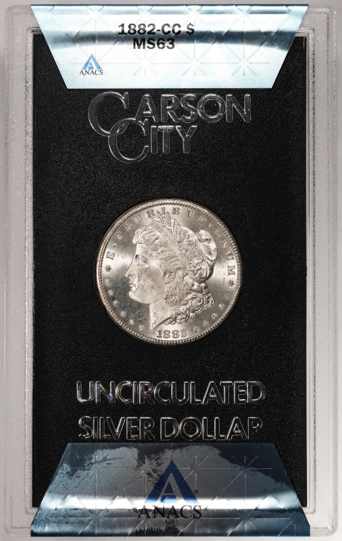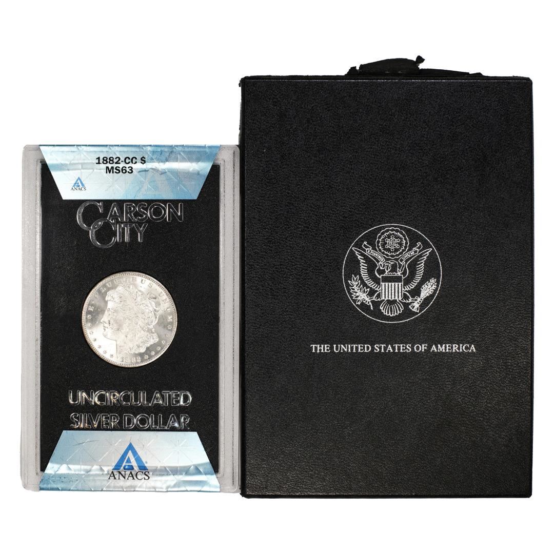 One 1882-CC $1 Morgan Silver Dollar Coin GSA Hoard Uncirculated ANACS MS63 w/Box. ANACS Certified.