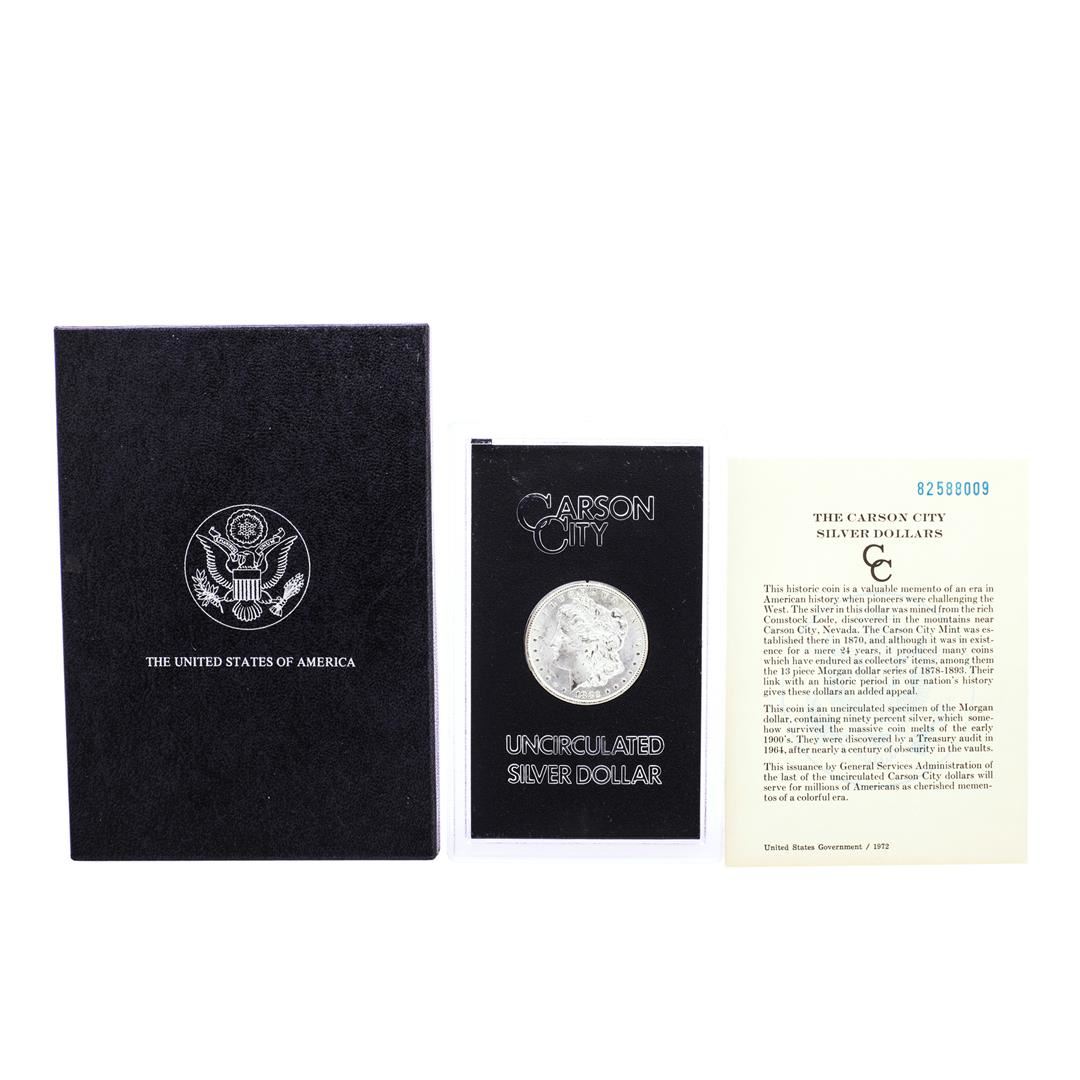One 1882-CC $1 Morgan Silver Dollar Coin GSA Hoard Uncirculated w/Box & COA.
