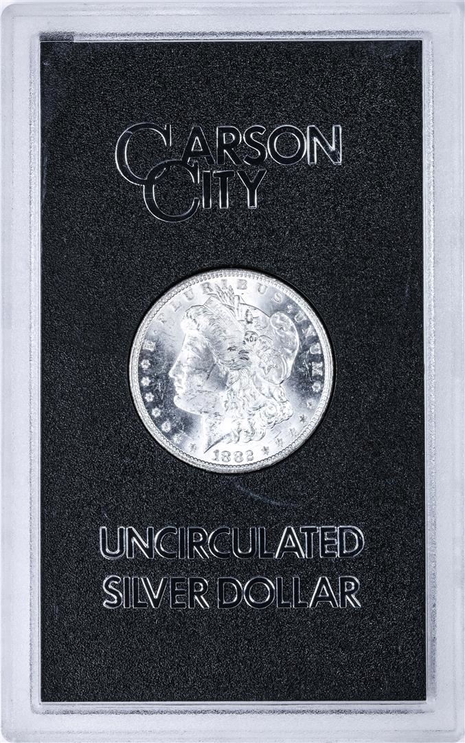 One 1882-CC $1 Morgan Silver Dollar Coin GSA Hoard Uncirculated w/Box & COA.